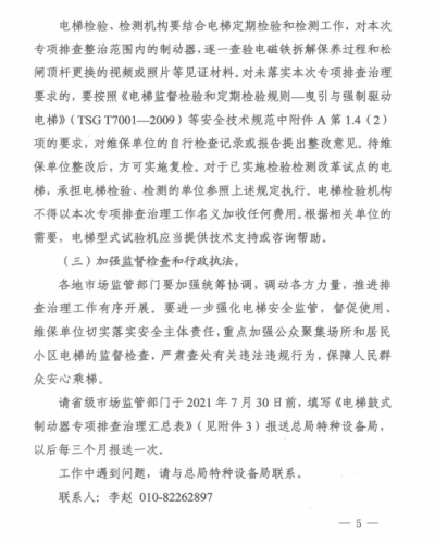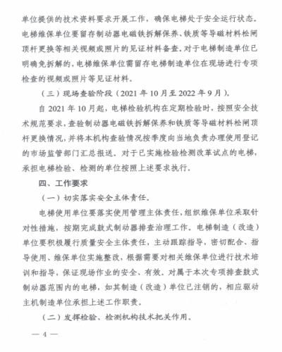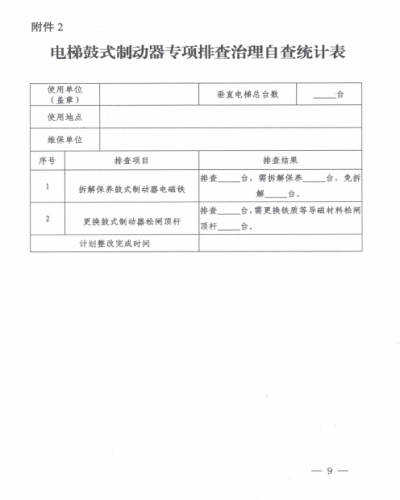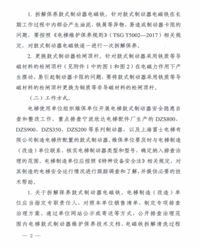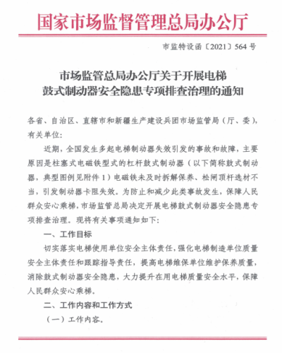 國家局電梯鼓式制動器檢查的通知