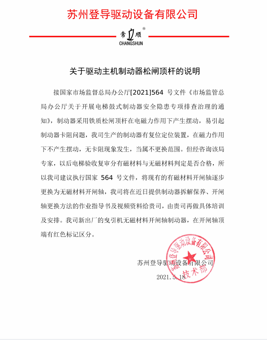 關(guān)于驅(qū)動(dòng)主機(jī)制動(dòng)器松閘頂桿說明的發(fā)函